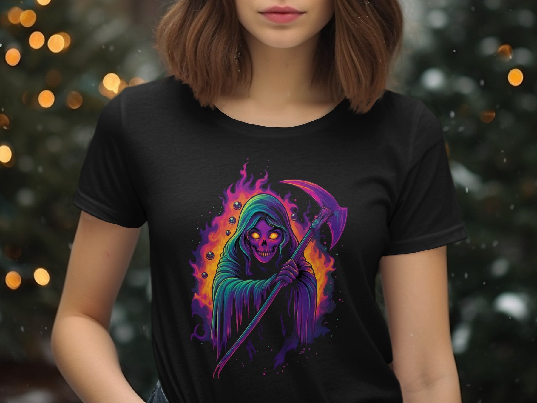 Add this Halloween T-Shirt for Women to your lineup and let the Glow Reaper headline your outfit. Limited drop—snag your new favourite before it fades 👻⚡