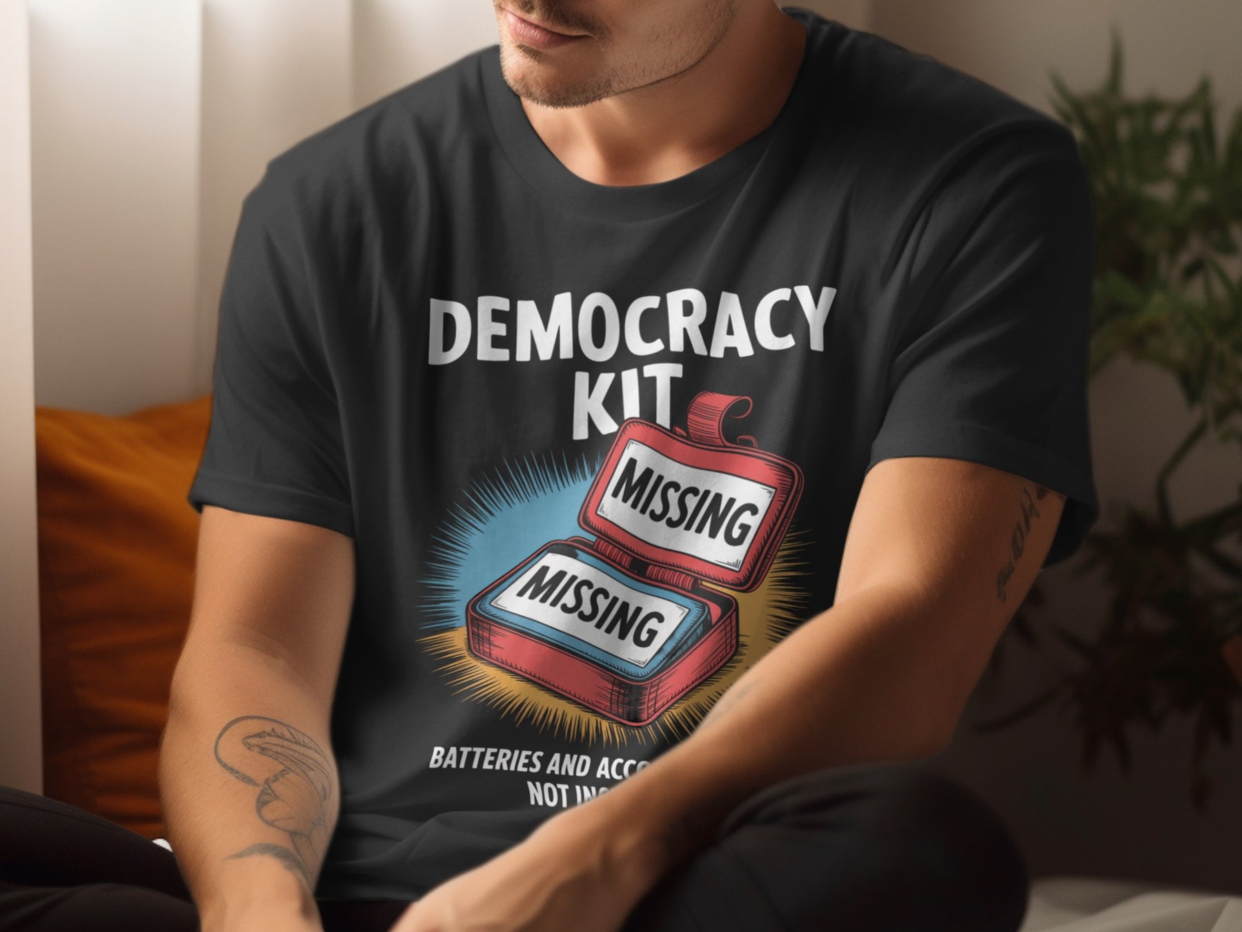 Make your point: the Democracy Kit T-Shirt is a conversation-starter for transparency and reform. Add it to cart and keep the pressure on—batteries (and accountability) still not included. ⚡